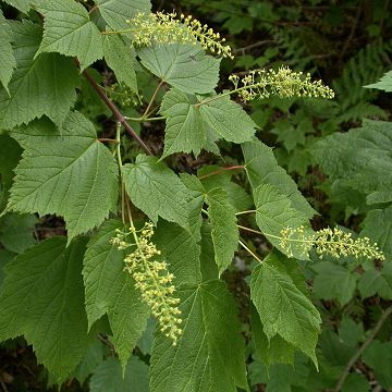 A closely allied species from subalpine forests of eastern Asia is Acer caudatum Wall. Pictured here is likely the subspecies ukurunduense. The inflorescence is more conical than in A. spicatum.