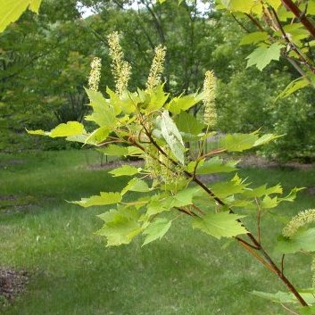 The inflorescences of this maple are relatively showy compared to most other representatives of this genus in North America. Fall color orange to red.