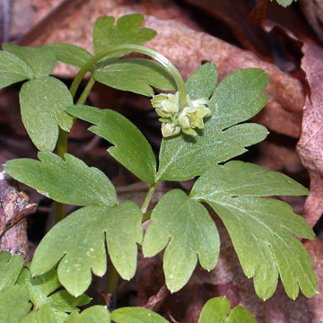 Herbaceous perennial 5-20 cm; basal leaves with long petioles, ternate, the primary divisions discrete, again 1-2-ternate or parted, ultimate segments broad, thin, round-toothed and mucronate; cauline leaves similar but smaller and less dissected, often borne a little above the middle of the shoot; corolla yellow-green, 5-8 mm wide.