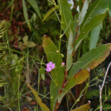 This species is sometimes treated as a variety of A. purpurea (var. parviflora) since it differs mainly in size (corollas mostly 2 cm or less long), although the lobes of the calyx are relatively long relative to A. purpurea. I took this photo in northeastern IL many years ago and recall at the time that the plant appeared to be a diminutive A. purpurea. The plant behind it is Salix discolor which has leaves mostly 1.5-3.5 cm wide.