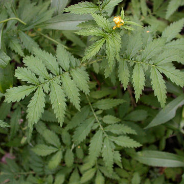 The seeds of this plant mature late summer into fall and stick to clothing, like miniature versions of burdock. The interstitial leaflets (small leaflets between the larger ones) are characteristic of plants in this genus.