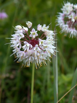 Herbaceous perennial. Bulbs usually clustered on a short rootstock. Scape slender, slightly ridged, to 60 cm. Leaves linear, channeled or nearly bluntish. Flowers in a nodding, many-flowered umbel subtended by 2 short-deciduous bracts. Pedicels filiform, 12 to 25 mm. Flowers campanulate; tepals white or rose, ovate-oblong, acute or obtuse, 2 to 3 inches long. Stamens exceeding the perianth. Filaments nearly filiform. Capsule 3-lobed, shorter than the perianth.