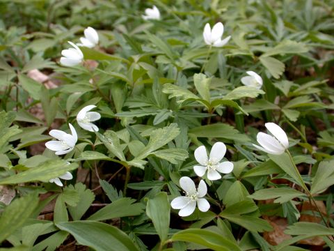 Herbaceous perennial from slender rhizome, less than 20 cm high. Basal leaves solitary, on long petioles; 3-5 leaflets, coarsely toothed; involucral leaves petiolate, the leaflets obovate with narrowly triagnular bases. Flowers solitary; sepals mostly 5, white to pinkish, oblong to oval, to 2.2 cm.