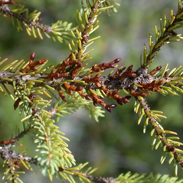 An obligate parasite of gymnosperms, mainly black spruce but also white pine and other conifers.