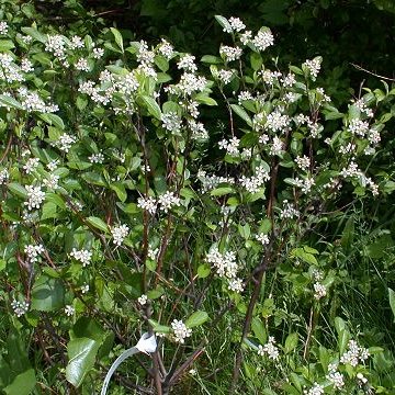 Colonial shrub. Leaves simple, alternate, serrate, with a row of dark glands along the midvein on the upper side. Flowers white, 5-merous. Fruit a small red pome.