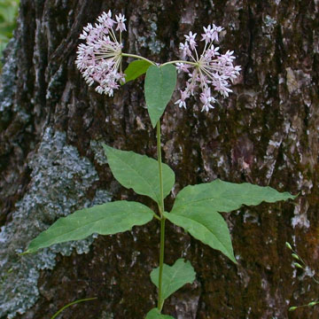 Herbaceous perennial; stem slender, usually solitary, 20-50 cm, with 1 or 2(3) terminal and subterminal umbels, normally with three leaf-bearing nodes, the lower and upper each with a pair of small leaves, the middle with a whorl of 4 much larger ones, or the leaves rarely all opposite in four pairs; leaves thin, lanceolate or lance-ovate, the larger 6-12 cm, acuminate, cuneate to a conspicuous petiole; peduncles 1-4 cm; corolla pink to white; corolla lobes 4.5-6 mm; hoods 4-5 mm, much exceeding the gynostegium, the lateral margins bearing a prominent, sharp, inflexed tooth near or below the middle; horn flattened, sword-shaped, falcately incurved; fruit erect on erect pedicels, very slender, 8-12 cm, containing about 25-35 seeds.