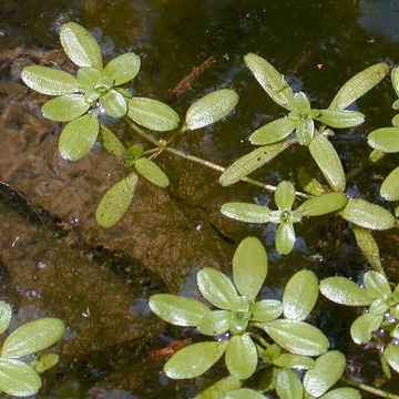 Annual; stems loosely clustered, 10-20 cm, rooting at the lower nodes, mostly submerged but with the shoot-tips floating, sometimes stranded in mud and completely emersed, rarely completely submersed; submersed leaves linear, 5-15 mm; floating or emersed leaves spatulate to obovate, to 5 mm wide, triplinerved; fruit sessile, obovate, 1-1.4 mm, somewhat longer than wide, the margins winged or at least sharp-edged on each side of the commissural groove toward the summit.