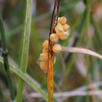 Herbaceous perennial; stems slender, 3-40 cm, solitary or in small tufts on long creeping rhizomes; leaves mostly 1-4 mm wide, often surpassing the stems; spikes 2-several, 5-20 mm, approximate or more or less remote; middle internodes 0.5-1.5 mm; terminal spike usually staminate, 0.9-2 mm wide; proximal staminate scales 2-3.5(-4) mm; perigynia bright orange when mature, divergent, ellipsoid or more often obovoid or obovoid-globose, beakless, usually little if at all compressed, 1.7-3 mm, 12-20-ribbed to nearly nerveless; pistillate scales half to fully as long as the perigynia, divergent in mature fruit; stigmas usually 2, the achene lenticular and often plump, occasionally trigonous if flowers with 3 stigmas.