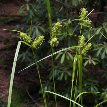 Tufted perennial to 60 cm; primary leaves 10-20 cm long and 2-4 mm wide; ligule rounded, little if at all longer than wide; pistillate spikes 8-13 mm thick; perigynia 5-7 mm, the slender beak equaling or longer than the body; achene 1.5-2 mm.
