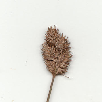 Tufted perennial to 90 cm; aphyllopodic. Leaves 2-4 mm wide, lax and elongate, sheaths hyaline ventrally. Spikes stout, mostly 4-12, gynaecandrous, to 9 mm, sessile in a crowded spike or head to 3 cm long. Pistillate scales shorter and narrower than perigynia; perigynia crowded, ascending, ovate, planoconvex, evidently nerved (or nerveless ventrally), 2-2.7 time as long as wide, margin winged and serrulate, tapering to a flattened and poorly defined beak. Achene lenticular, 1.1-1.5 mm long and 0.6-0.8 mm wide; stigmas 2.