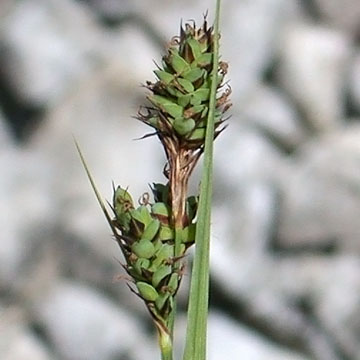 The contrasting light gray-green perigynia and dark brown scales are rather distinctive. More common in the northern part of its range, it is widely distributed across the lower 48 but rare in most states.