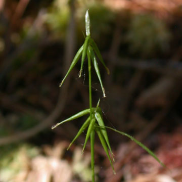 As sedges go this species is pretty easy to identify because of its evenly spaced lateral spikes each with 6-10 long, slender perigynia and the fact that it is usually found growing in the shade of Atlantic white cedars. Carex pauciflora is superficially similar and also grows in peatlands, but only has one spike at the top of the stem (vs. 3-5 spikes per stem) and the perigynia have shorter beaks (2 mm vs. 3-4 mm).