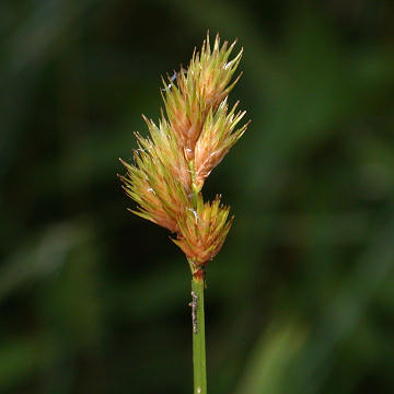 Tufted perennial to 70 cm; aphyllopodic; leaves 1-3 mm wide, shorter than stems, sheaths hyaline ventrally; spikes 5-12, gynaecandrous, to 10 mm, sessile in a compact spike 1.5-3 cm; pistillate scales shorter and narrow than perigynia, perigynia appressed-ascending, planoconvex, not much wider than the achene, to 1 mm wide and 4 mm long, 3.5 to 5 times as long as wide, few-nerved on both sides, with a narrow winged margin; beak slender, terete at the tip; achene lenticular, to 0.7 m wide and 1.3 mm long; stigmas 2.