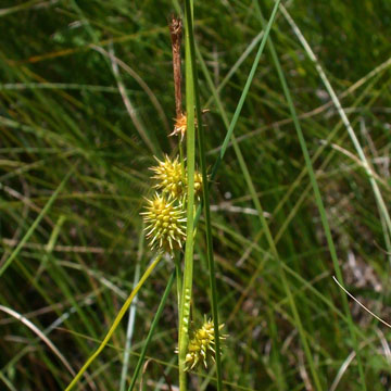 Differs from C. flava and C. viridula in that the pistillate scales are similar in color to the perigynia rather than a contrasting brownish color. Plants from the Great Lakes region of MI, IN, and OH with larger perigynia with serrulate beaks have been recently recognized as C. viridistellata Derieg, Reznicek, & Bruederle