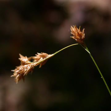 Tufted perennial to 1 m; aphyllopodic. Leaves 3-5 mm wide, shorter than stems, bracts inconspicuous. Spikes 3-15, gynaecandrous, 6-25 mm, sessile in a loose, often lax spike that is sometimes interrupted below. Pistillate scales equally but narrower than perigynia; perigynia planoconvex, smooth, to 5 mm long and 2.2 mm wide, nerveless or few nerved ventrally, strong 3-8 nerved dorsally, widest below, beak flattened and sometimes obscure; margin winged, the wings finely serrulate-ciliolate, not expanded above the middle. Achene lenticular, 1.5-2 mm; stigmas 2.