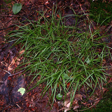 Loosely cespitose perennial; stems slender, 10-40 cm, shorter than the leaves; main leaves 1-2 mm wide, pale green; terminal spike staminate, slender, 4-16 mm; pistillate spikes 2-3, 3-6 mm long, 1-3 cm apart, the two lowest spikes not overlapping, the lowest one on a short peduncle; lowest bract foliaceous, often equaling or surpassing the inflorescence; pistillate scales stramineous or reddish-brown, the margins hyaline, acute or short-cuspidate; perigynia 2-10, light green to brownish-stramineous, minutely pubescent, 2.2-2.7 mm long, the body slightly flattened, obovoid above a stipe-like base, 2-keeled, abruptly contracted to a beak 1/4 to 2/5 as long as the body; achene rounded-trigonous.
