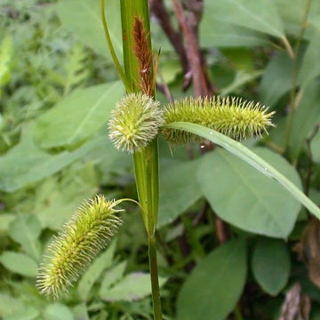 This species is similar to C. comosa but smaller and more slender, with the teeth of the perigynia straight or only slightly out-curved (vs. strongly out-curved). Despite the similarity to C. comosa and the fact that the two often occur together, C. pseudocyperus is more likely to hybridize with C. hystericina; such hybrids resemble C. pseudocyperus but are sterile and have slightly more inflated and less reflexed perigynia, and have more strongly red-tinged basal sheaths.