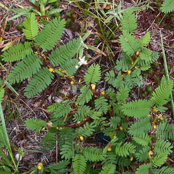 This species is vegetatively similar to C. fasciculata but with the gland on the petiole short-stalked rather than sessile. It also has five stamens (vs. 10 stamens) and smaller flowers, with the longest petal under 1 cm long and the others much shorter (vs. petals 1-2 cm long and all about the same size). The leaflets of both species are said to fold together when touched, however I have found that neither one really does this. The foliage is similar to Mimosa pudica which is known for its dramatic rapid nastic movements.