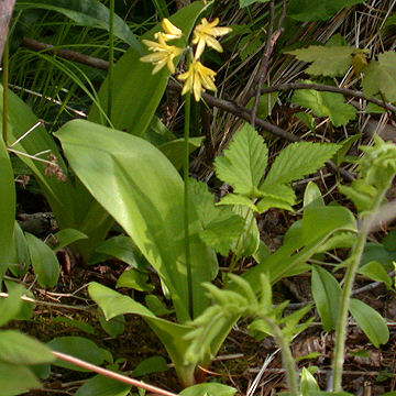 Rhizomatous perennial. Leaves 2-5, simple, glossy green, oblong to obovate, abruptly acuminate. Flowers 3-8 in an umbel on a long, erect scape, nodding, greenish-yellow; tepals 6. Fruit a blue to white berry.
