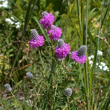 Perennial to 1 m. Leaves pinnate compound with less than 5 pairs of leaflets; leaflets usually less than 2mm wide. Flowers purple in cylindrical heads to 2-7 cm long; calyx and bracts pubescent.