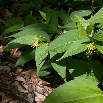 Low, woody shrub to 1.2 m; twigs terete. Leaves opposite, short petiolate, ovate-lanceolate, acuminate, serrate. Flowers small, yellow, in terminal cymes on new growth. Fruit a small capsule containing many tiny seeds.