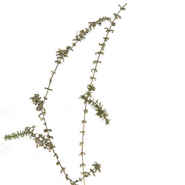 Submerged aquatic. Leaves all cauline, flaccid, pale, relatively soft, sessile, slender, minutely and sharply serrate, 1-nerved, whorled, rarely more than 1.5 mm wide, never more than 2 mm, the upper not closely imbricate. Flowers sessile; staminate spathes less than 6 mm long, separating and floating at anthesis.