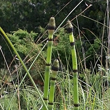 The stomata of this species occur in two lines in each furrow, whereas those of E. fluviatile occur in a single line. Can hybridize with E. hyemale and E. variegatum.