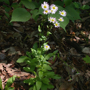 Herbaceous biennial or short-lived perennial to 70 cm, pubescent with long, spreading hairs to subglabrous. Leaves simple, few to several, narrowly lanceolate or oblong to ovate; stem leaves broadly rounded to sessile or more of less auriculate-clasping bases. Flowers: involucres with phyllaries in one series, all of them nearly or quite the same length. Ligules about 100, linear-filiform; rays white to pink; disk bright yellow; heads less than 2.5 cm across.