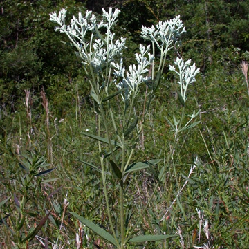 Perennial from a crown or short, stout rhizome; stems 40-100 cm, spreading-villous at least near the base to villous puberulent above; leaves opposite, elliptic to elliptic-ovate, lance-elliptic, or elliptic-oblanceolate, more or less sessile, glandular-punctate, evidently hairy to subglabrous; inflorescence corymbiform, dense, more or less flat-topped; involucres 8-11 mm, often with sessile dark glands, otherwise glabrous or slightly hairy; involucral bracts imbricate, narrow and long-acuminate, the inner white-scarious at the tip and sometimes with broader, more rounded, mucronate tips than the outer; flowers 5; corolla white 4-5.5 mm.
