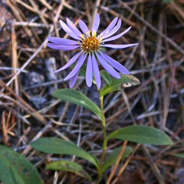 Rhizomatous perennial; stems 10-90 cm, usually densely glandular above or sometimes only spreading-villous; leaves mostly basal, firm, scabrous or glabrous, entire to remotely and shallowly toothed, the lower ones elliptic, tapering to a well-developed petiole, those above more oblong and becoming sessile and somewhat reduced and distant; heads few to many in an open, corymbiform, sparsely leafy-bracteate inflorescence; involucres 8-16 mm; involucral bracts broad, firm, more or less imbricate, with loose of spreading green tips, the inner densely glandular, the outer sometimes viscid-villous as well; rays 15-35, violet-purple, 1-2.5 cm.