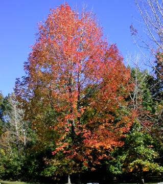 A common forest tree and the most common native ash. Fall color can be bronze to yellow, purple, or shades of red. An interesting effect occurs in open grown specimens where the leaves towards the middle of the tree remain yellow and the outer leaves turn purple-red. This is the commercial source of ash lumber. Major league baseball bats are made almost exclusively of white ash, though sometimes together with the bark of Quercus suber.
