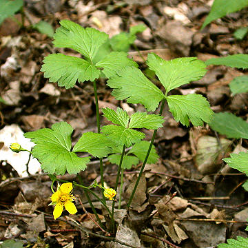 Herbaceous, rhizomatous perennial; leaves all basal, trifoliate, on long petioles; leaflets broadly cuneate-obovate, serrate and usually shallowly lobed, the lateral leaflets asymmetrical; inflorescence a cyme with few to several flowers; peduncle about equaling the leaves; sepals triangular; hypanthium obconic, its mouth contracted by a conspicuous disk; petals yellow; stamens numerous, the filaments slender, erect, persistent; carpels 2-6, free and distinct, inserted on a hairy receptacle, mostly enclosed by the hypanthium but with the styles protruding; ovule 1, basal; fruit an achene.