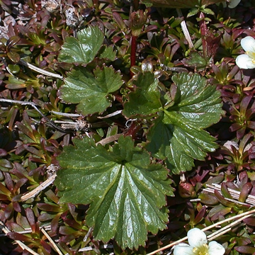 Herbaceous perennial from a coarse rhizome; stems 14-40 cm, nearly smooth below, more hairy above; basal leaves with a rounded-reniform terminal leaflets 5-10 cm wide, shallowly 5-7-lobed, sharply and irregularly serrate, truncate to subcordate at the base, with 0-6 smaller, laciniate leaflets rarely over 1 cm long; cauline leaves similar to the lateral leaflets of the basal leaves; sepals triangular, twice as long as the bractlets; petals yellow, 0.8-1.5 cm, spreading; mature styles 8-10 mm, hairy about half their length.
