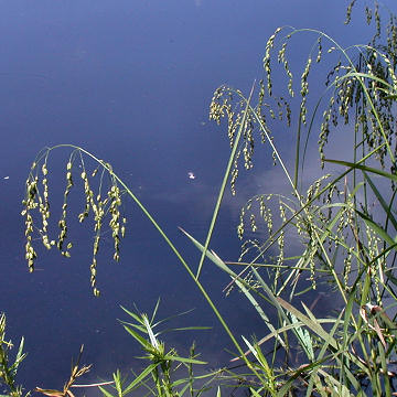 Erect perennial to 1 m; stems solitary or in small tufts. Leaves 3-8 mm wide; ligule 2-6 mm. Inflorescence 10-30 cm long, diffuse, branches nodding with most spikelets borne near the tip; spikelets broadly ovate, 4-8 mm, each with 5-10 flowers; glumes with scarious margins; first glume lanceolate, 1.6-2.4 mm; second glume broadly ovate, about 2.2 mm; lemmas broadly ovate, veins visible but not raised, 2.9-4 mm, margins thin or scarious, not covering the sides of the palea, the tip acute and projecting 0.5 mm past the palea; palea round-obovate; stamens 2.