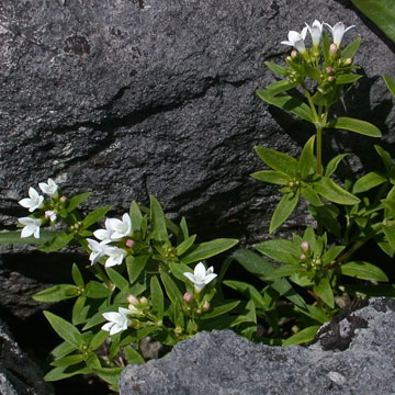Herbaceous perennial from a fibrous-rooted base; stems numerous, simple or branches above, 10-25 cm, glabrous or finely hairy, especially at the nodes; leaves sessile, broadly linear to narrowly oblong, 1-3 cm long and 2-5 mm wide, narrowed to the base, glabrous or nearly so, 1-nerved; flowers on short-pedicels, numerous in loose or crowded terminal cymes, heterostylic; sepals lance-linear, 1-2 mm, in fruit equaling or exceeding the capsule; corolla purplish to white, hairy within, funnelform, 5.5-9 mm; corolla lobes half as long as the tube; stamens included or barely exserted; fruit globose or depressed-globose, half-inferior, 2.5-3.5 mm.