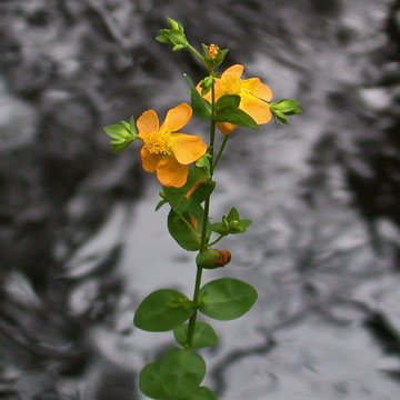 Herbaceous perennial; stem simple, virgate, glabrous, 20-70 cm; leaves elliptic to subrotund, 8-20 mm long, one-third to two-thirds as wide; cymes small and few-flowered; bracts lanceolate or subulate; calyx erect and somewhat accrescent; sepals oblanceolate to obovate, varying to lanceolate or ovate; petals 5-10 mm, orange-yellow, persistent and inflexed around the fruit; stamens mostly 50-80, somewhat connate at the base, but not fascicled; fruit ovoid, 3-5 mm, unilocular; styles 3, distinct, persistent, 2-4 mm.