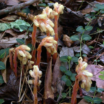 Parasitic on mycorrhizal fungi, often associated with oaks.