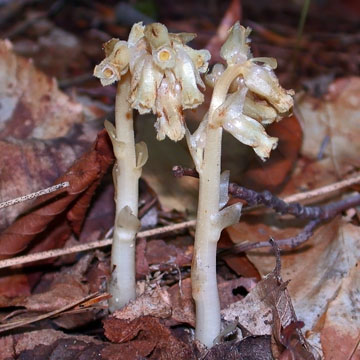 Parasitic on mycorrhizal fungi, usually associated with pines or oaks.