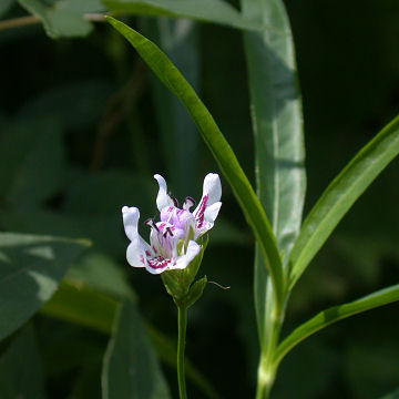Colonial, rhizomatous perennial to 1 m. Leaves opposite, linear to lanceolate, entire, glabrous. Flowers opposite, in head-like, axillary spikes on long peduncles; calyx lobes narrow; corolla pale violet to white, two-lipped; upper lip concave; lower lip spreading or deflexed, the lobes about equal to or longer than the tube. Seeds two per locule, rough, 3 mm wide.