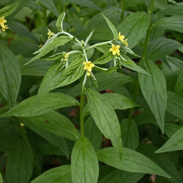 Herbaceous perennial; stems 40-80 cm, simple or branched above, the main internodes mostly 3-6 cm; leaves subsessile, lanceolate to lance-ovate, mostly 2-4 cm wide, acuminate, with 2-3 prominent lateral veins on each side; flowers solitary in the upper axils, becoming distant, yellowish, 5-7 mm long and about as wide; calyx lobes nearly as long as the corolla; nutlets ovoid, white, shiny, 3.5-5 mm, smooth or sparsely pitted.