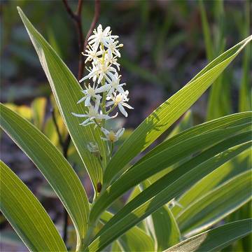 Herbaceous perennial to 25" high, finely hairy or glabrous. Leaves lanceolate or lance-oblong, to 6" wide and 2" wide, acute, ascending, usually folded, sessile and somewhat clasping, finely hairy beneath. Flowers few to several in a subsessile or short-peduncled terminal raceme; perianth segments more than 3 mm long, longer than the stamens, inflorescence racemose, flowers and fruits with long pedicels. Fruit to 0.4" in diameter, green with purple stripes, becoming uniformly red at maturity.