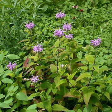 Aromatic, perennial herb. Leaves opposite, petiolate, acuminate, more or less serrate. Flowers in solitary, terminal clusters; corolla lavender, the upper lip nearly straight, softly pubescent and densely villous at the apex; stamens surpassing the upper lip.
