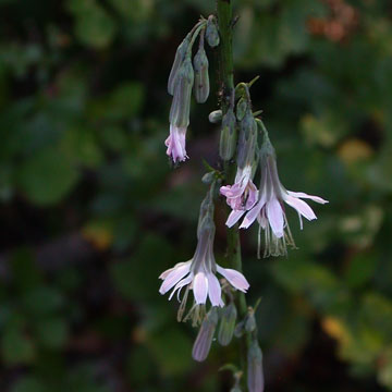 Herbaceous perennial; stems 40-140 cm, glabrous throughout; basal and lowermost cauline leaves elongate, 7-35 cm long and 1-12 cm wide, few-toothed to pinnately lobed, the lobes often rather narrow and distant; cauline leaves much reduced upward, often becoming linear and entire; inflorescence very narrow and elongate; heads nodding; involucres 10-13 mm, usually purplish, without long hairs; principle bracts mostly 8, the reduced outer ones often passing into those of the slender peduncle; flowers (8-)10-11(-13), pink or pale lavender; pappus stramineous.