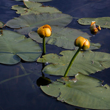 This plant seems to have about a dozen names and various subspecies and varieties. The way I learned some members of this genus, and it makes a simplistic sort of sense, is that Spatterdock tends to have mostly emergent, upright leaves and few floating leaves, while Bullhead Lily has leaves that mostly float horizontally on the surface of the water (unless the water level is below soil level). My experience growing various wild and cultivated plants is that individual plants will favor one of these growth habits regardless of the growing conditions.