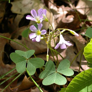 Perennial from a scaly, bulbous base. Leaves all basal, trifoliate; leaflets obcordate, glabrous; petioles sometimes hairy. Flowers pedicellate in umbelliform clusters, on peduncles 10-20 cm long, greatly surpassing the leaves; flowers subtended by small bracts; petals rose-violet or sometimes white, 10-18 mm, not notched at the apex; sepals callous-tipped.