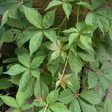 Very similar to Virginia Creeper but less capable of climbing on solid surfaces because it lacks adhesive discs on the tendrils.