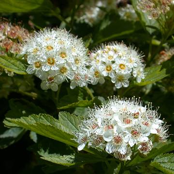 An occasionally planted shrub that is uncommon in the wild. The purple-leaved cultivar in some of these pictures is P. opulifolius 'Diablo'. Dirr does not seem to think highly of this species, probably because of its uneven growth. Requires pruning to maintain a symmetrical shape and even then may be best suited for massing or borders.