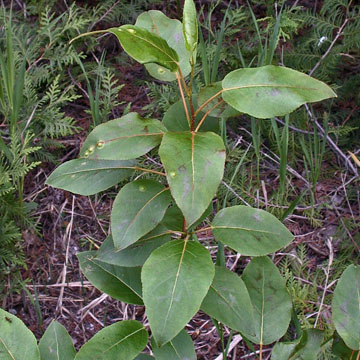 A far north ranging species that can be distinguished from most other poplars by the relatively narrow leaves with nearly terete petioles and orange resinous streaks on the underside of the blade. A rare native hybrid with P. deltoides (P. x jackii) is commonly known as Balm-of-Gilead and sometimes planted as a shade tree.
