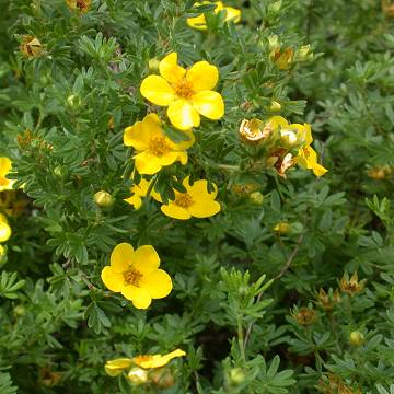 Small, irregular shrub to 4' high and wide. Leaves alternate, pinnate compound, to 1" long; leaflets 3-7, typically 5, linear-oblong, acute, with revolute margins, deep green, glabrous. Flowers bright yellow, to 1.5" wide, singly or in few-flowered cymes; petals 5, blunt; stamens and pistils numerous. Fruit an achene.
