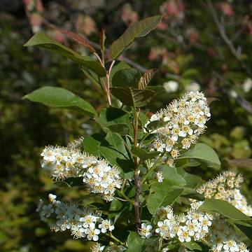 Can grow to 30' high and almost equal spread, sometimes occurring as a tree with a few main trunks. Birds devour the fruits as quickly as they ripen. Although reputed to be edible, the fruit is so astringent that it is nearly impossible to swallow, hence the name "Choke Cherry".